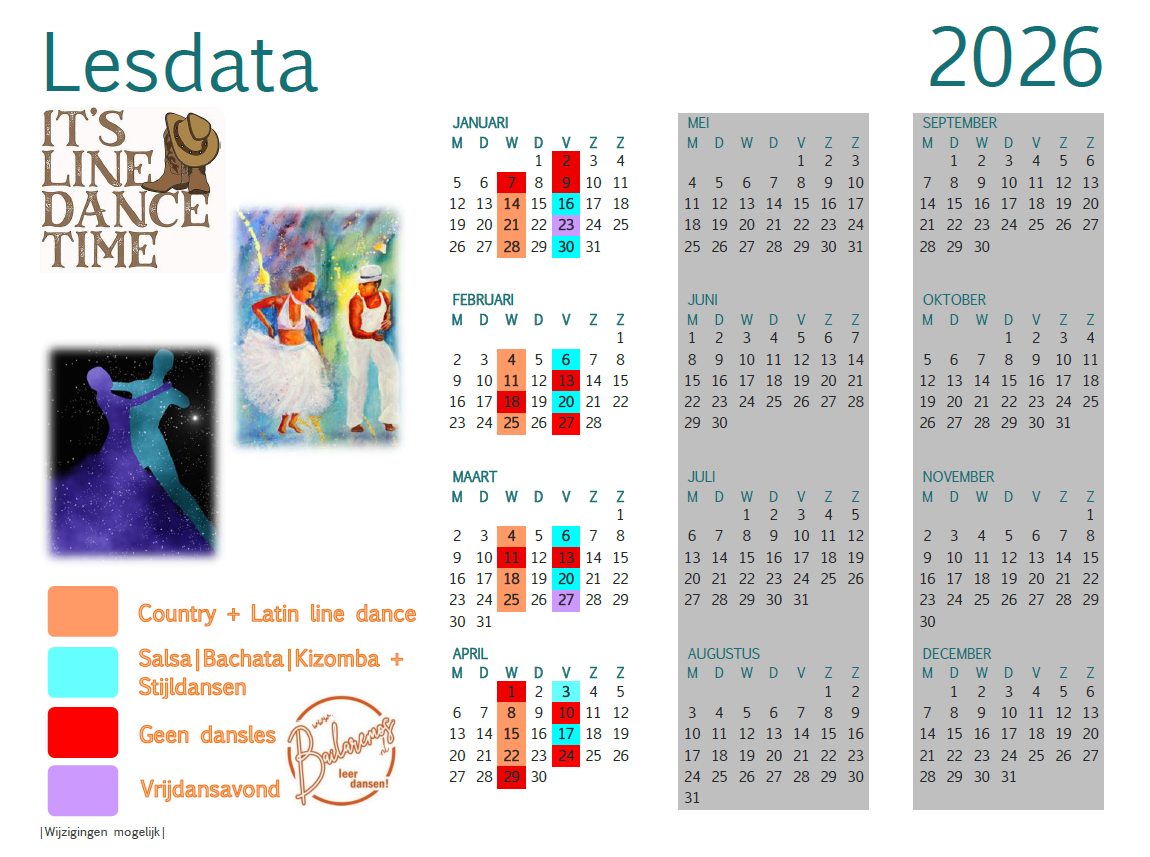 Aan deze kalender kunnen geen rechten worden ontleend, wijzigingen voorbehouden.
